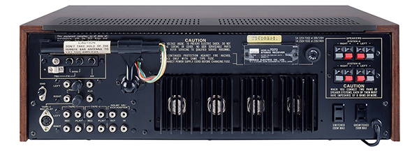 Fent: A ferritantenna az AM-, valamint a 300/75 ohmos FM-antenna csatlakozásokhoz kapcsolódik. Két MM (mozgómágneses) bemenet található, amelyeket egy segédbemenet és három magnó/adapter hurok egészít ki (ezek közül az egyik 5 pólusú DIN csatlakozón is elérhető), míg az A/B hangsugárzó-kimenetek rugós szorítós kapcsokra kerültek. Figyelemre méltók a komplementer végerősítő tranzisztorok is: csatornánként egy-egy pár, a hátlapon elhelyezett, szabadon álló hűtőbordára szerelve.