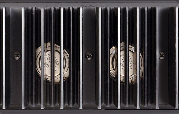 Fent: A Sansui 7070 hátulján található hűtőborda közeli felvétele.